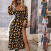 1 * Elegantes, bedrucktes Kleid mit langen Ärmeln und Schlitz für Damen